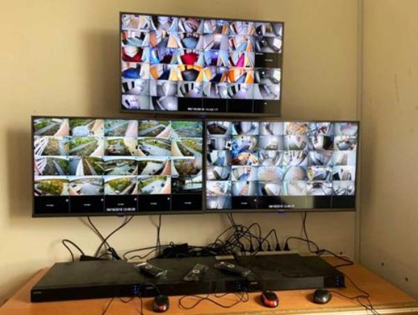 Внутри помещений были установлены сетевые видеорегистраторы и купольные IP-видеокамеры 2 Мрix. По периметру территории и на зданиях установили уличные IP видеокамеры 5 Мрix. Круглосуточное наблюдение у охранника организовано через 3 монитора.