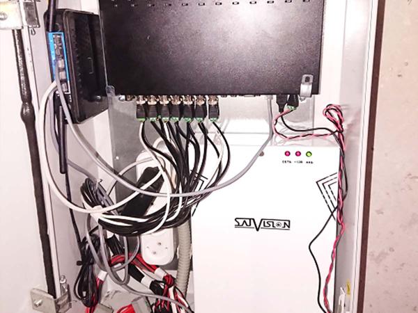 Для реализации поставленных задач, были выбраны 5 уличных AHD-камер 2 Mpix, 9 купольных AHD-камер 2 Mpix для установки внутри помещений и на улице, 1 IP-видеокамера 5 Mpix для распознавания автомобильных номеров, для обеспечения бесперебойного питания был установлен блок БП.
