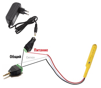 SVT-M11 - трехпроводная схема используется для подключения к принимающим устройствам через разъем RCA типа «тюльпан» или 3,5 Jack.