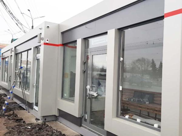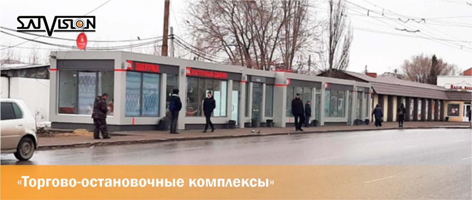 Торгово-остановочные комплексы находятся в городе Омск и представляют собой три смежных помещения со стеклянными стенами и отдельными входами.